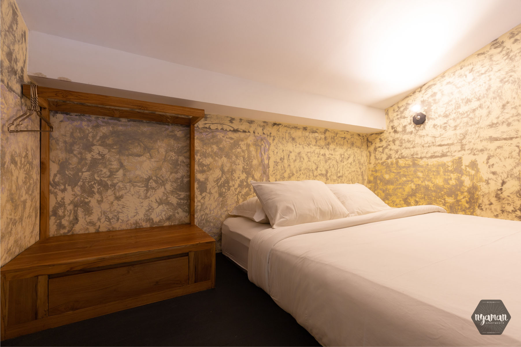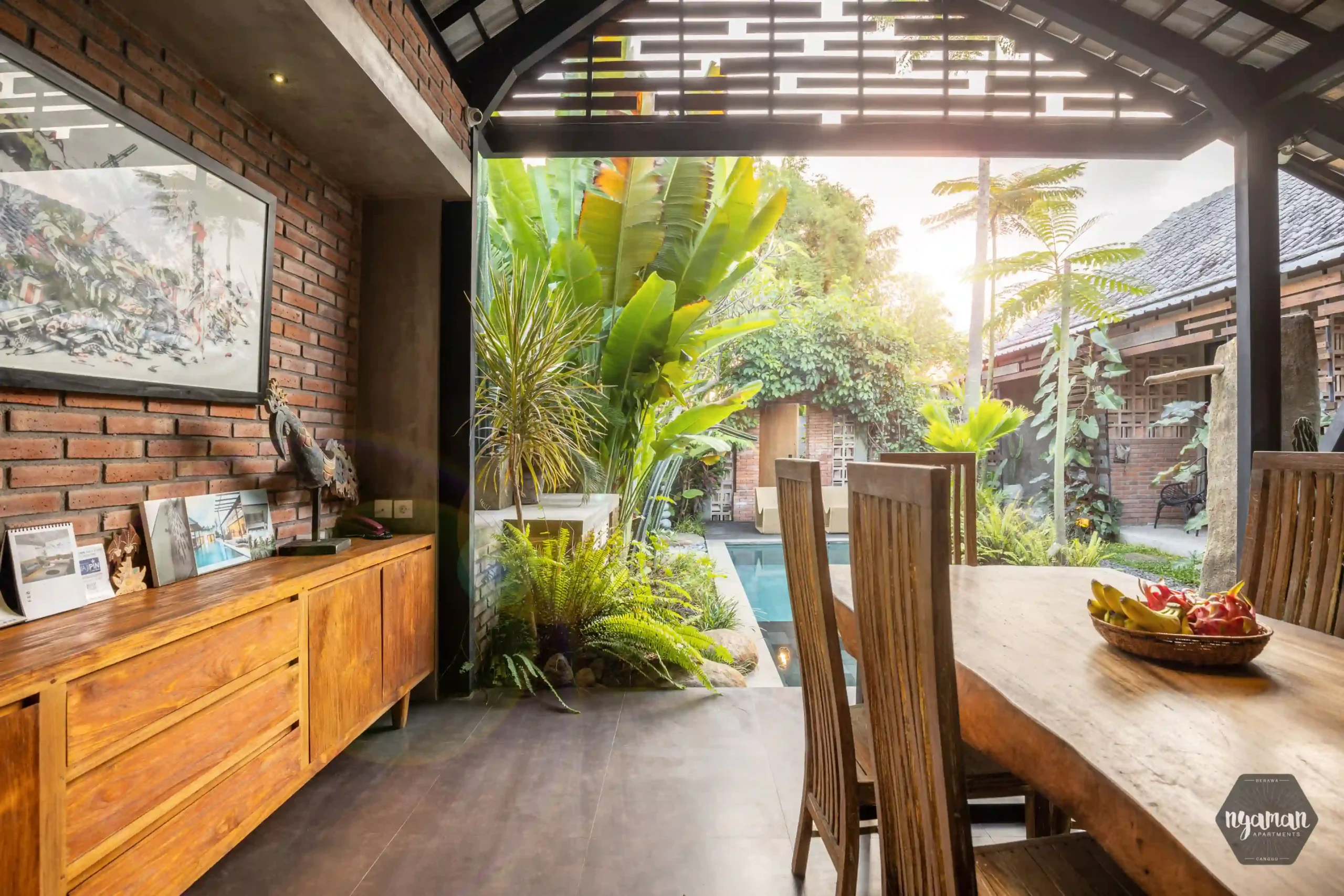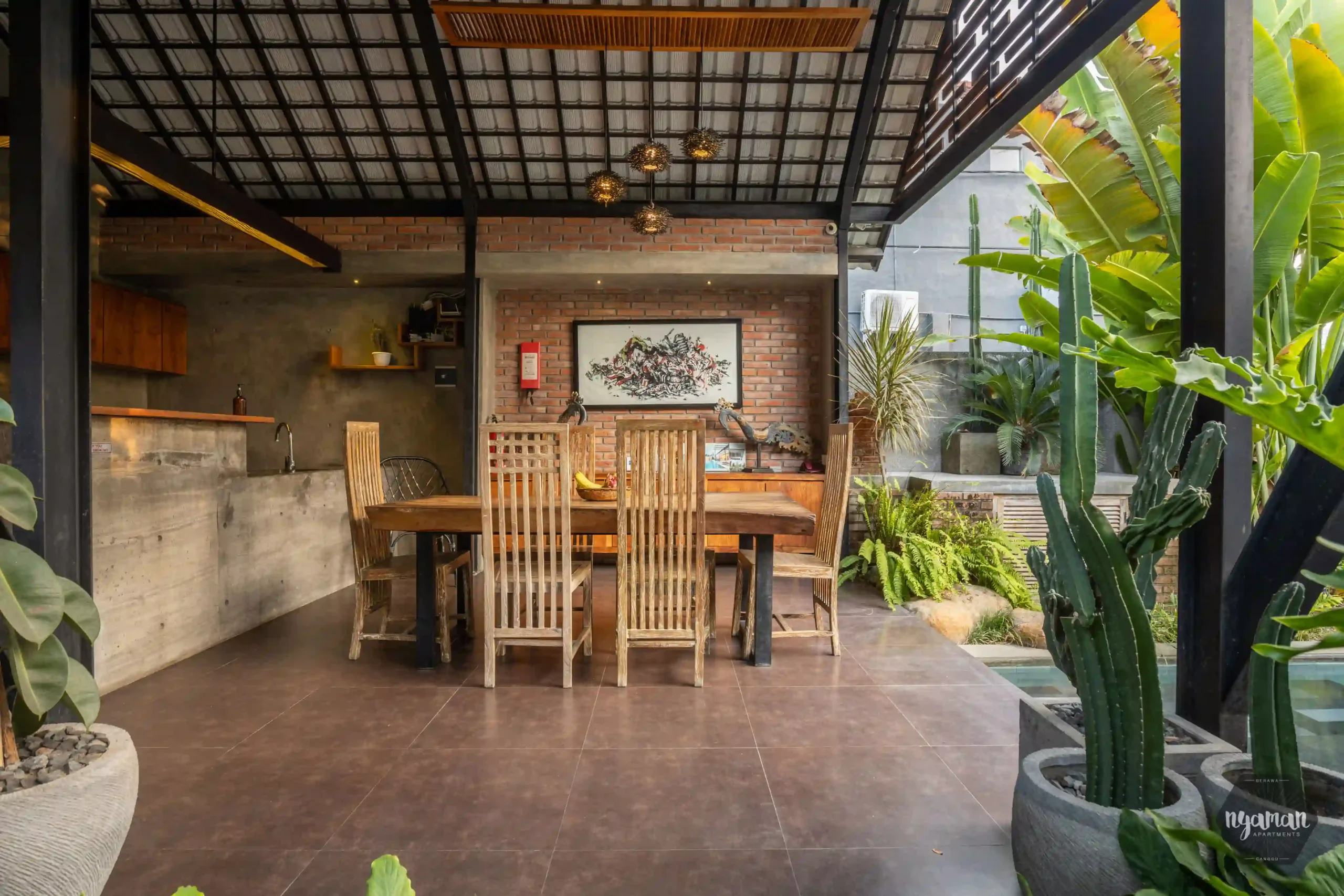 Select the listing, choose Nyaman Apartments Canggu, then book now.