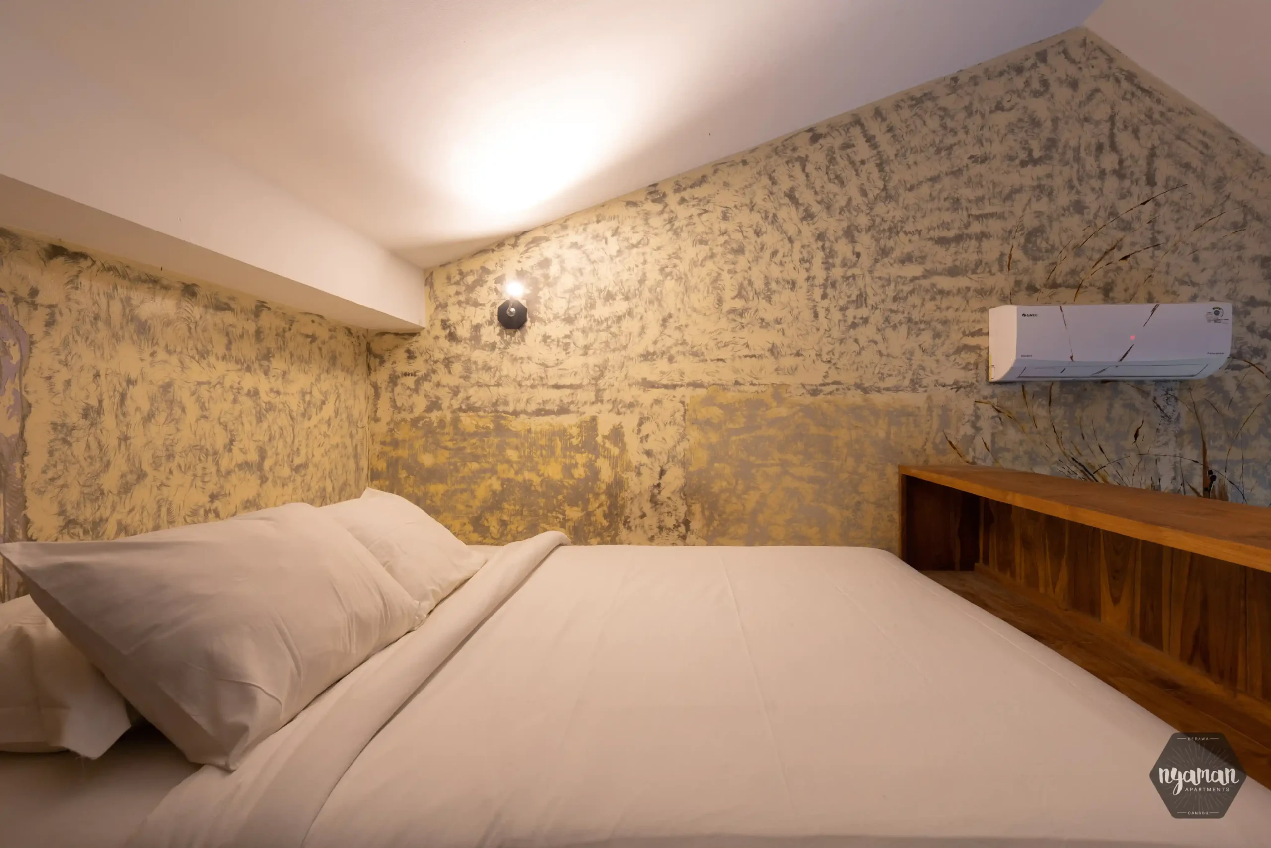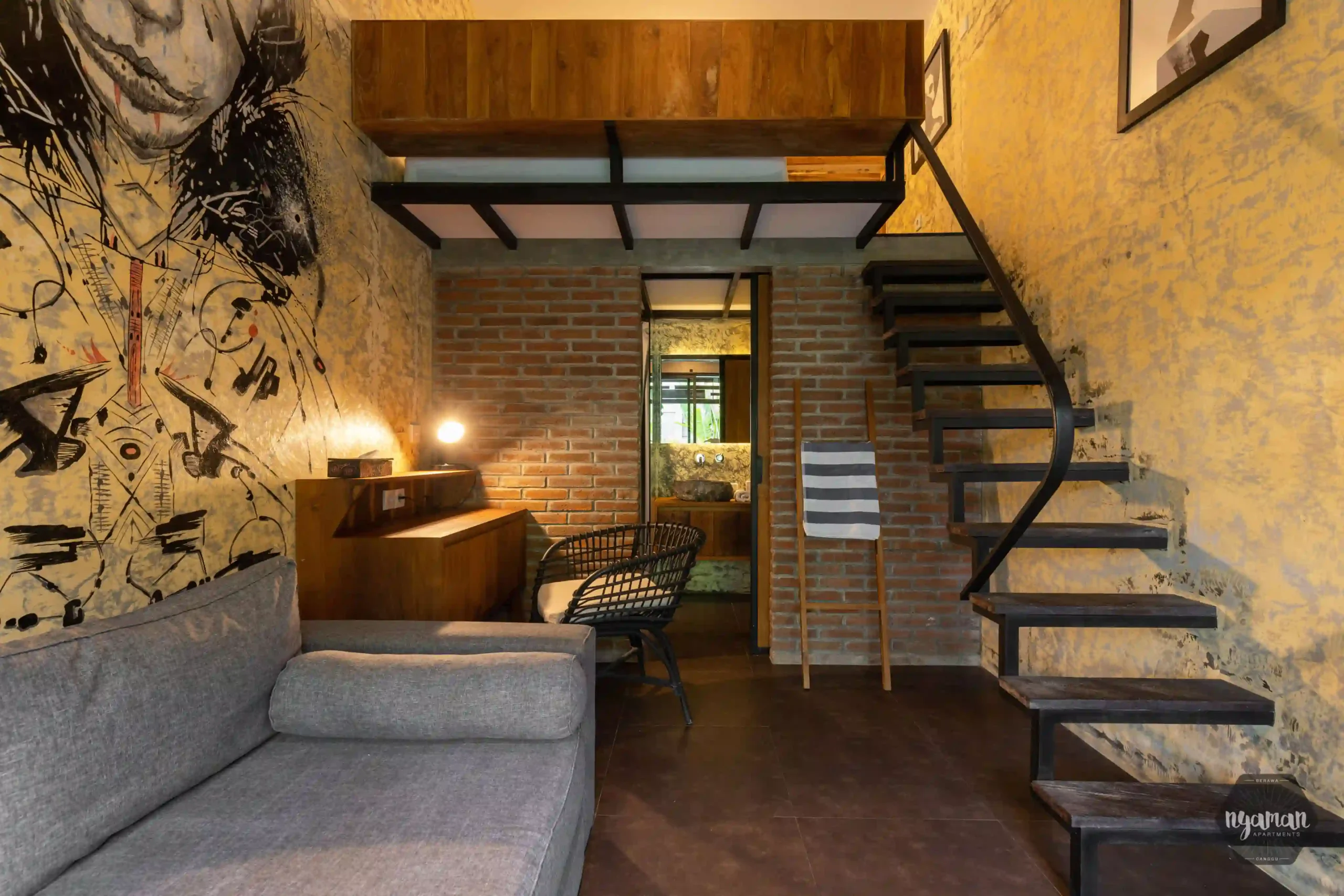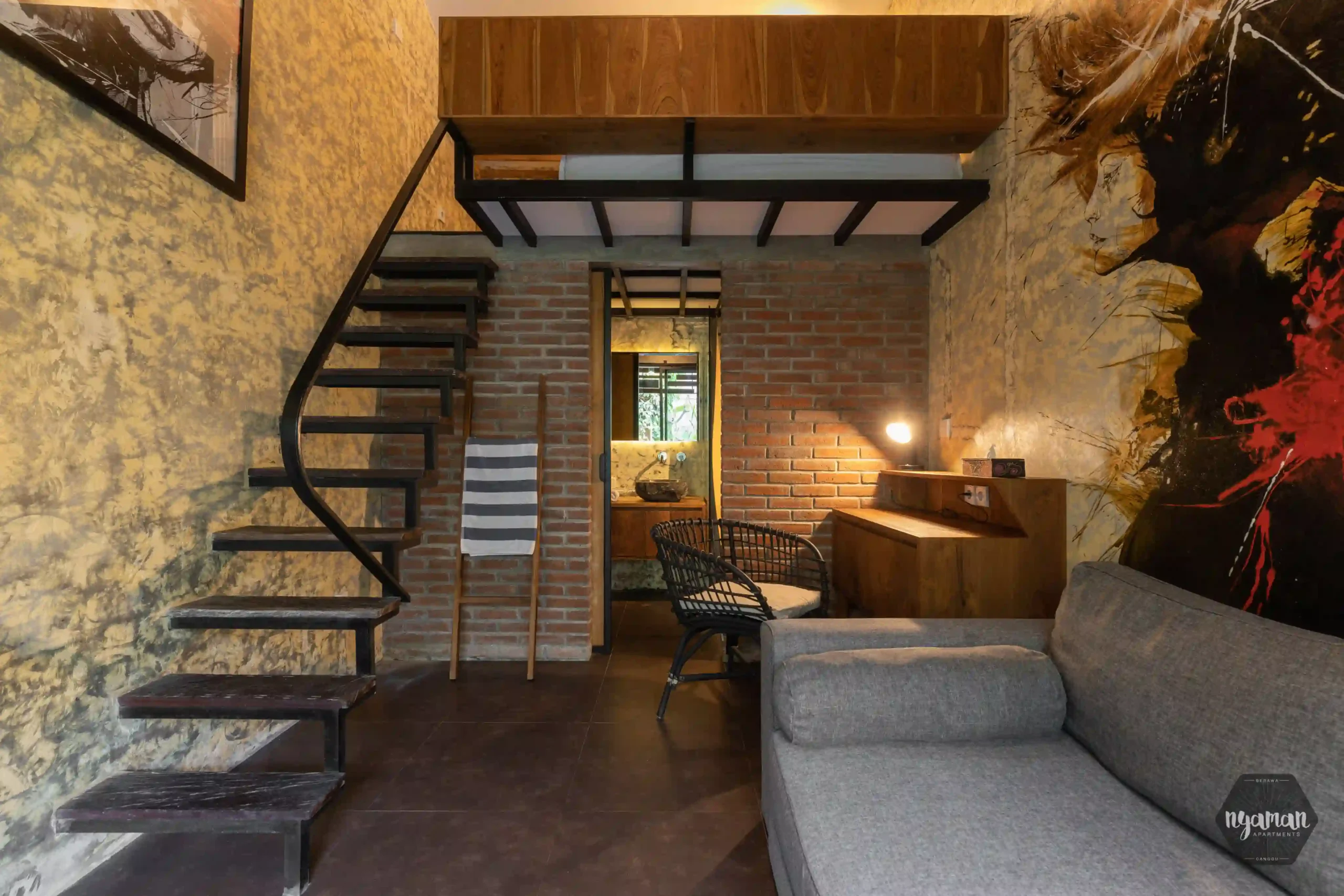 Select the listing, choose Nyaman Apartments Canggu, then book now.