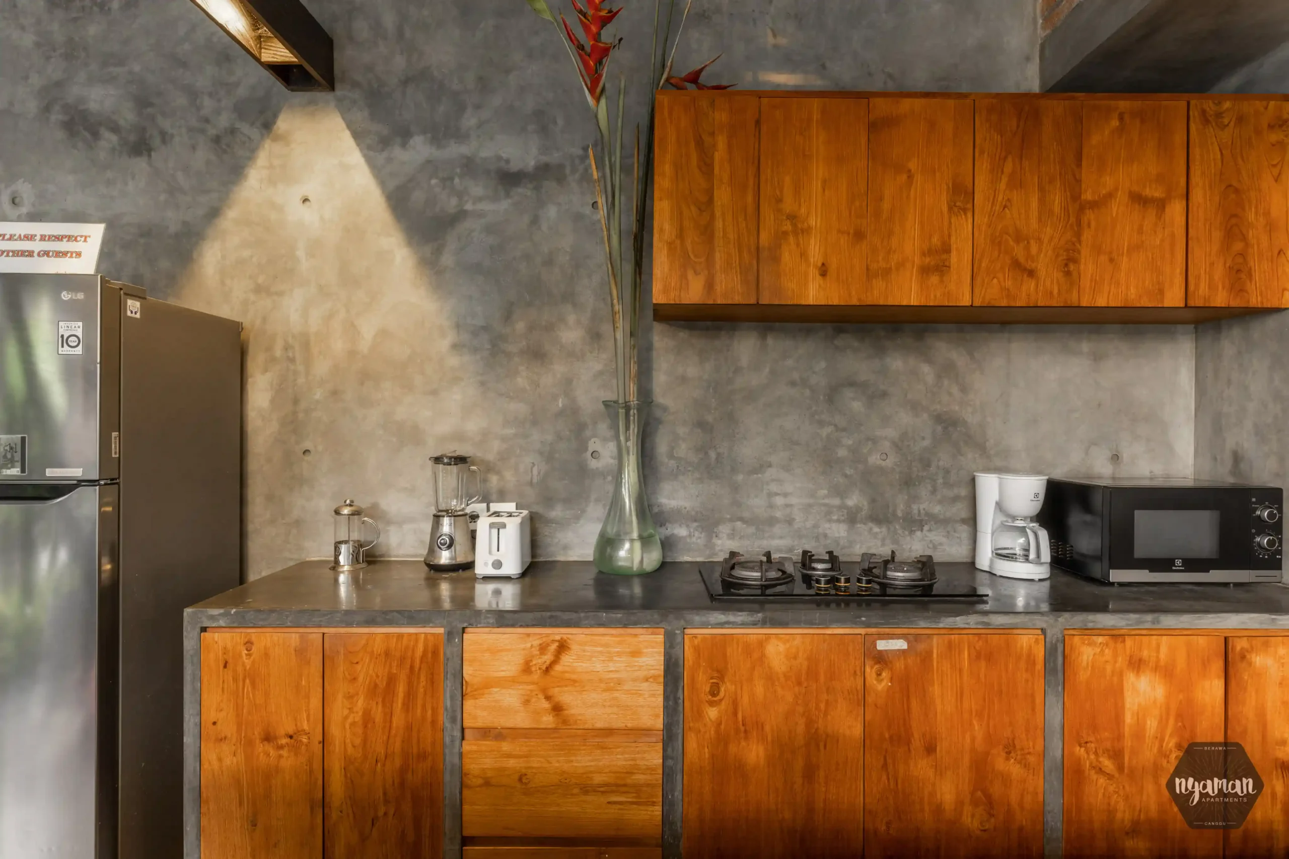 Being in the heart of Canggu, it is mostly walking distance to many good cafes and restaurants, such as Milk and Madu, Milu by Nook, Cafe Cinta, Baked, Nude, etc, and still a walking distance to Finns Recreation Club. In addition, it’s also less than 5 minutes ride by scooter to the famous Berawa Beach, Finns Beach Club and Atlas Beach Club.